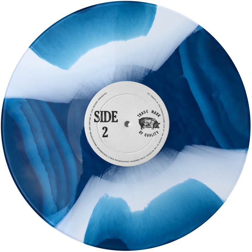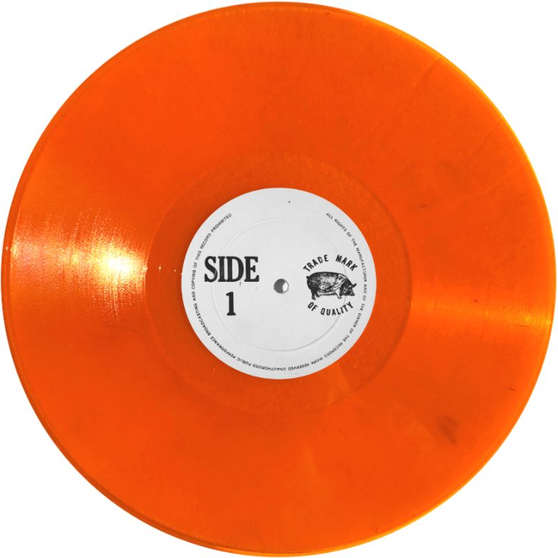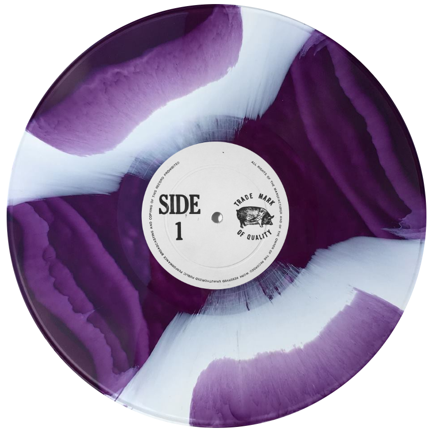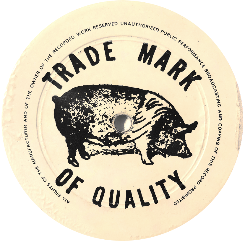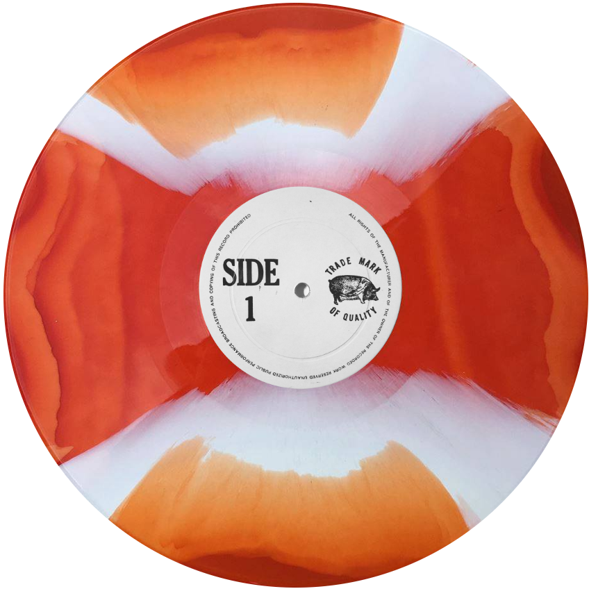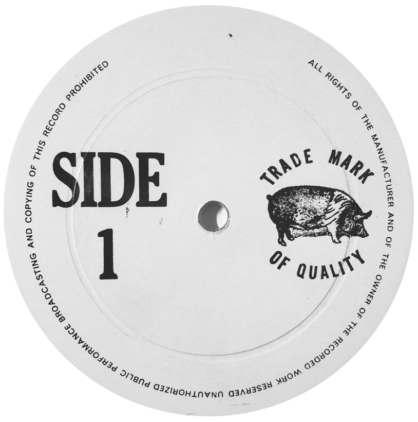 – White label (farm pig) – found on orange, blue vinyl & multi coloured varations