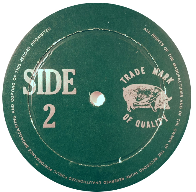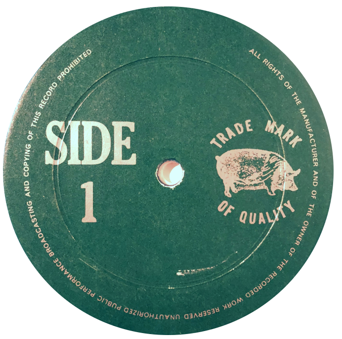 – Green label (tracklist / big pig) – found on black, green & red vinyl